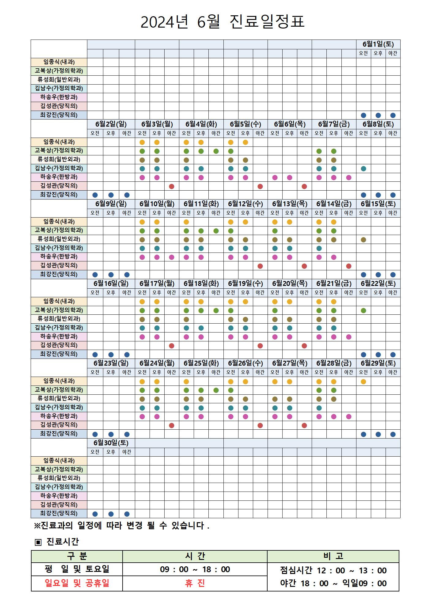 2024년 6월 진료일정표